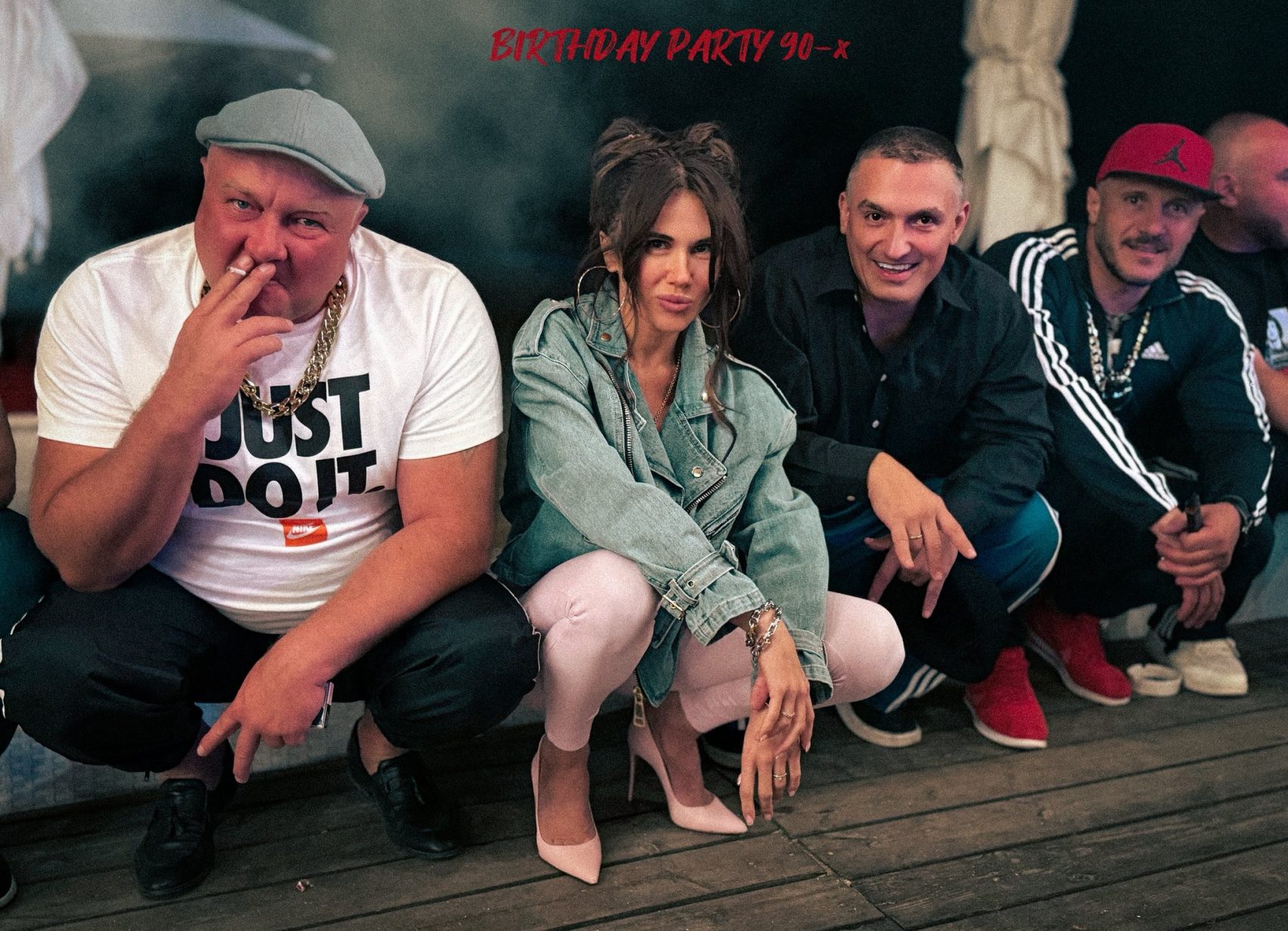 Іменинником став їхній спільний друг Андрій, який підтримав атмосферу, з’явившись у малиновому піджаку та з масивним ланцюгом. Гості вечора також обрали образи, натхненні кримінальною естетикою того часу.