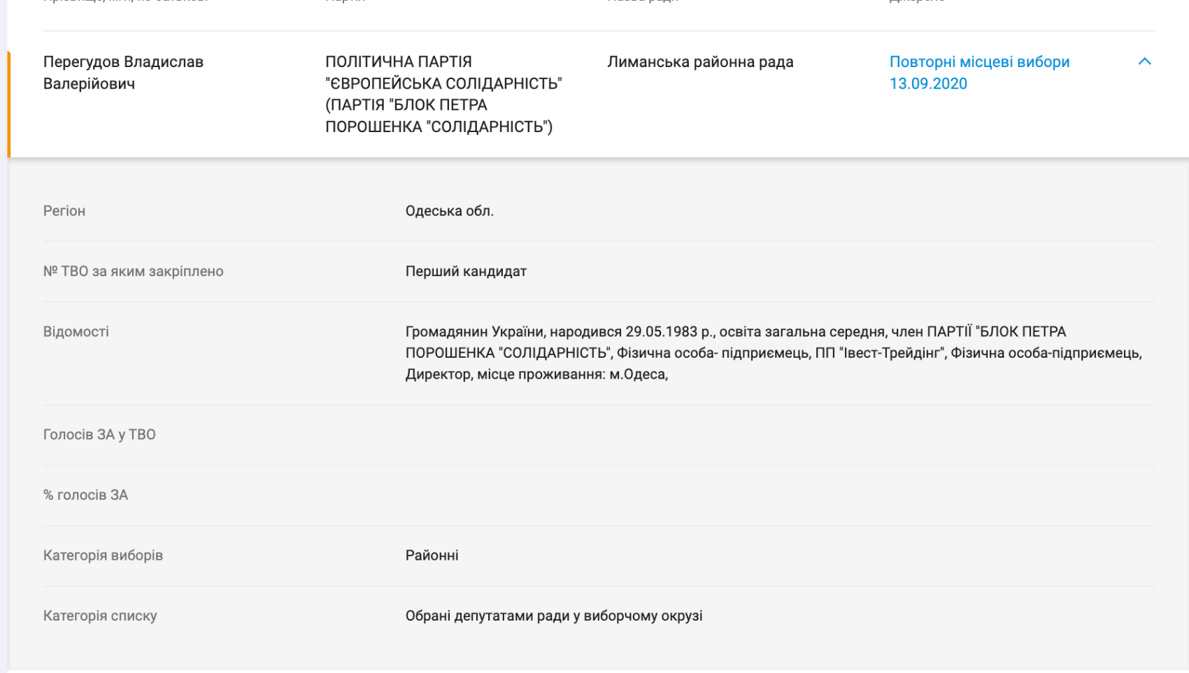 Владислав Перегудов раніше був депутатом Лиманської районної ради